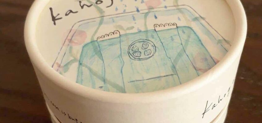 kahogo soapは90日熟成乾燥した透明な枠練り石鹸で、こちらの石鹸は化粧箱の天面デザインを